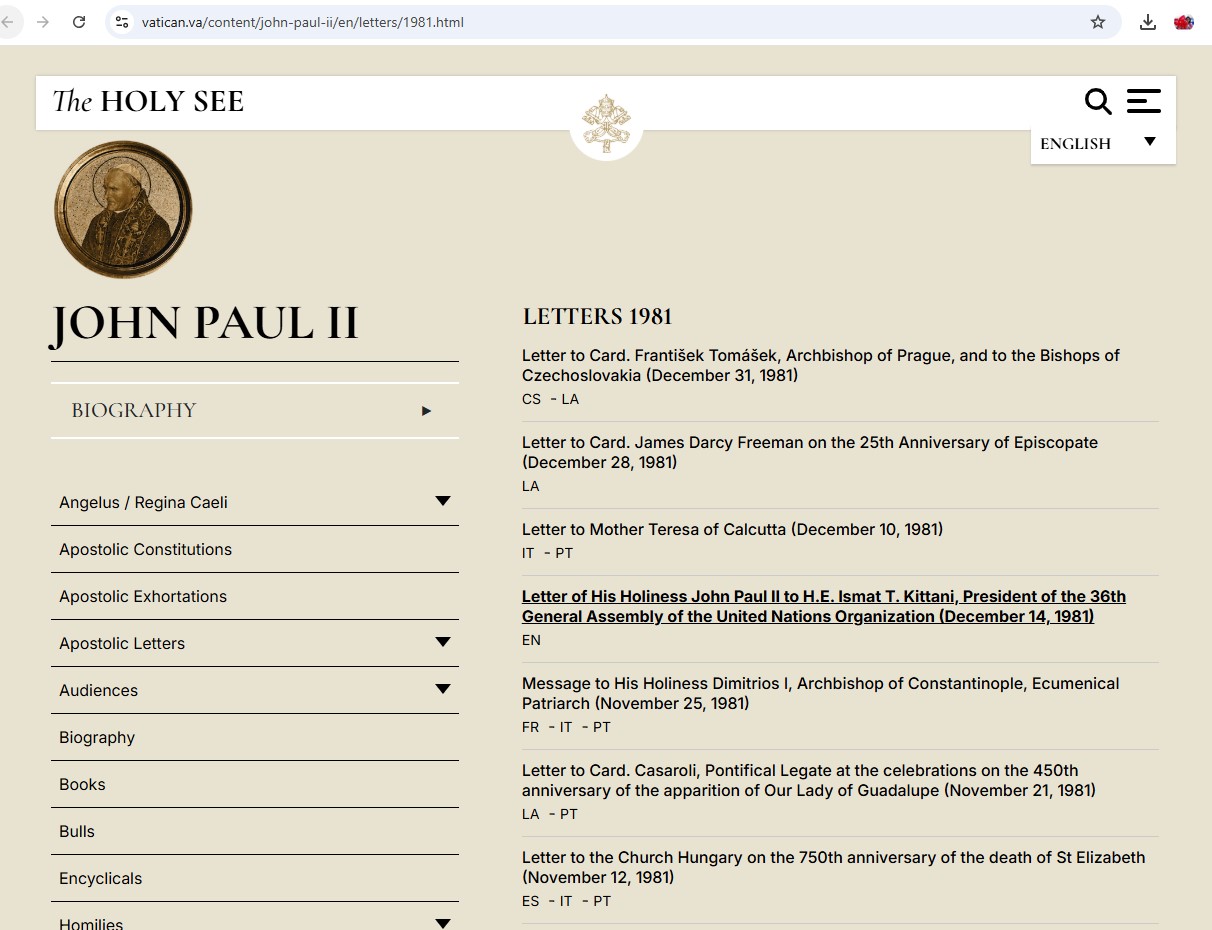 https://www.vatican.va/content/john-paul-ii/en/letters/1981.html - Report on Mother Teresa’s millions in secret Vatican bank accounts (based on Gianluigi Nuzzi’s findings):